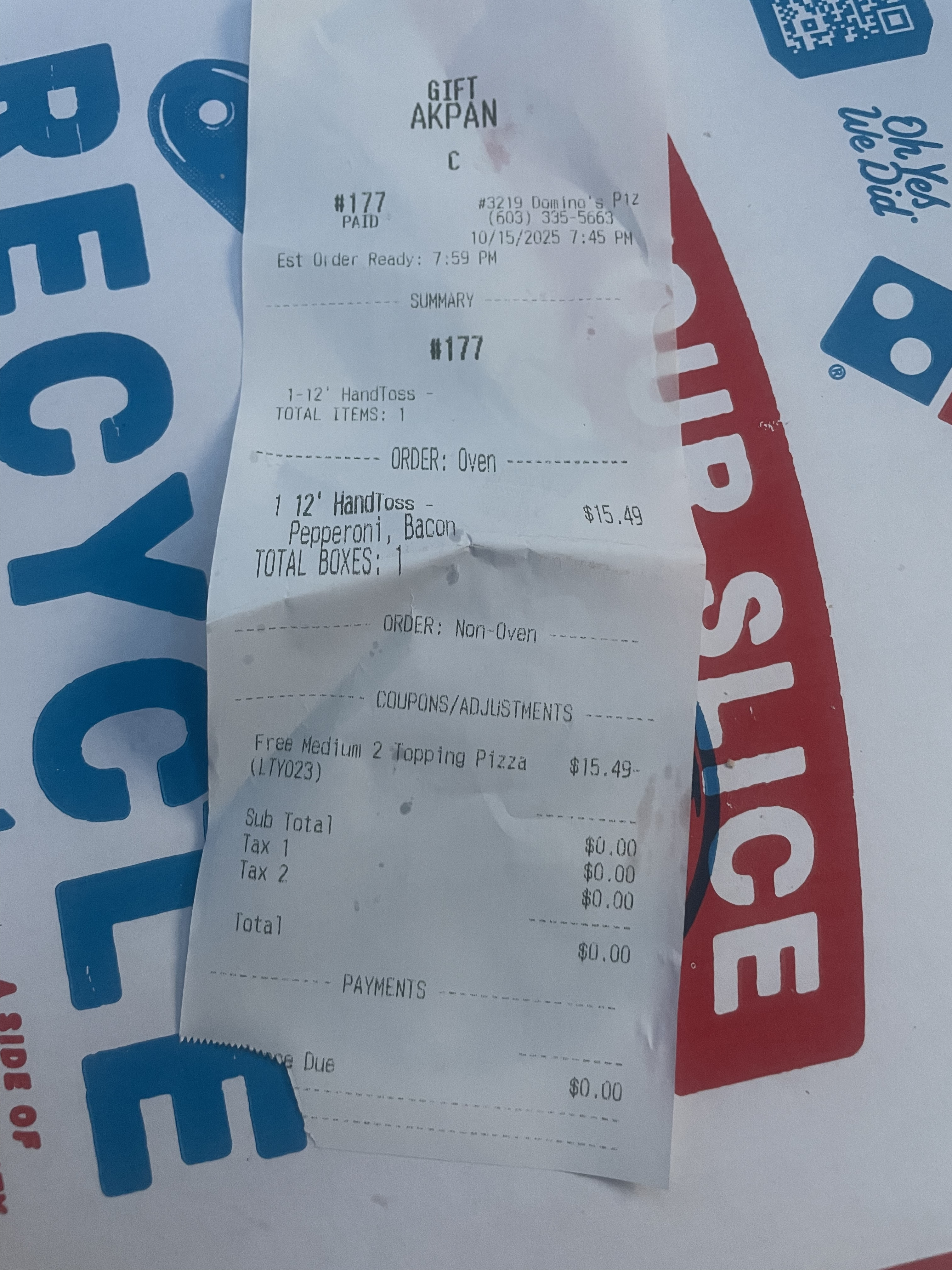 Dominos | 60+ Points [1x Free 2-Topping Medium Pizza]