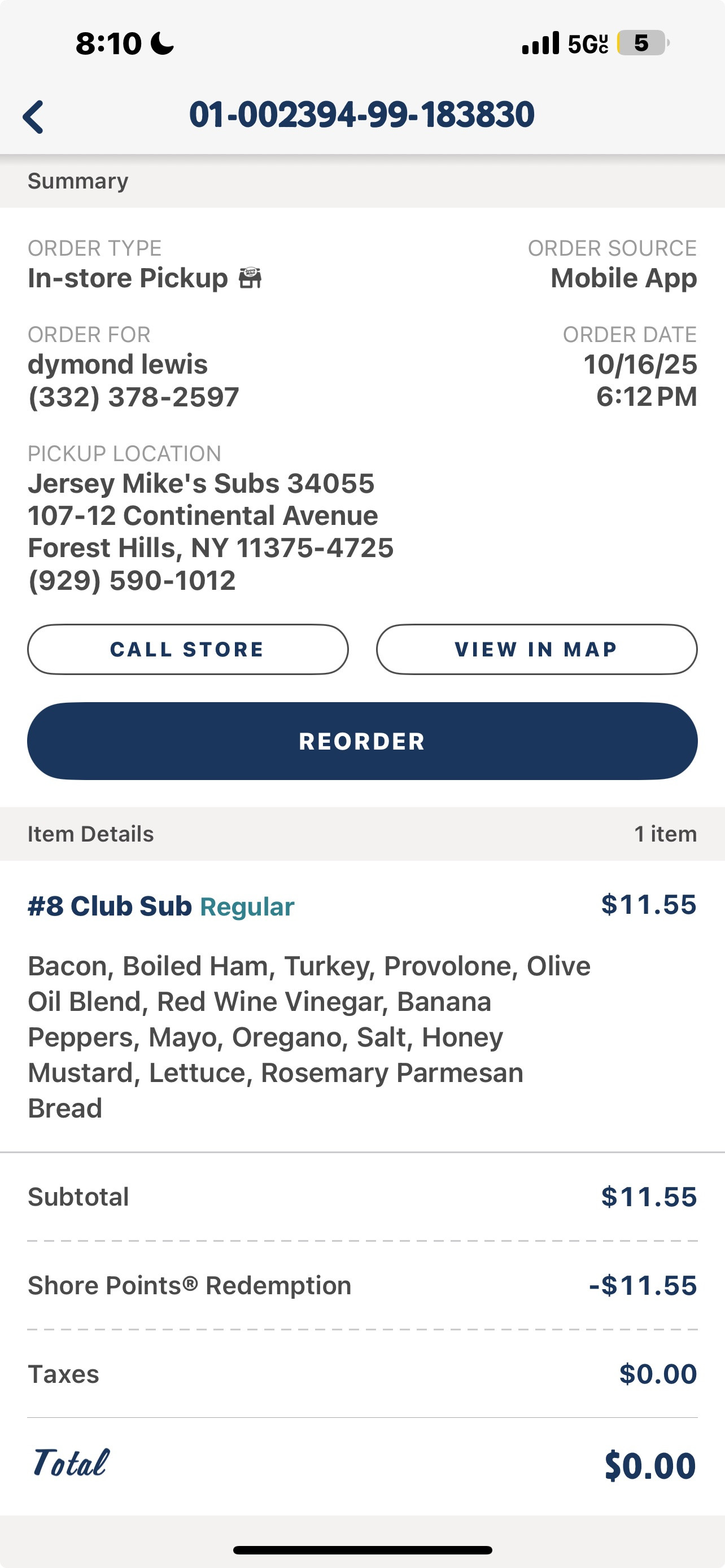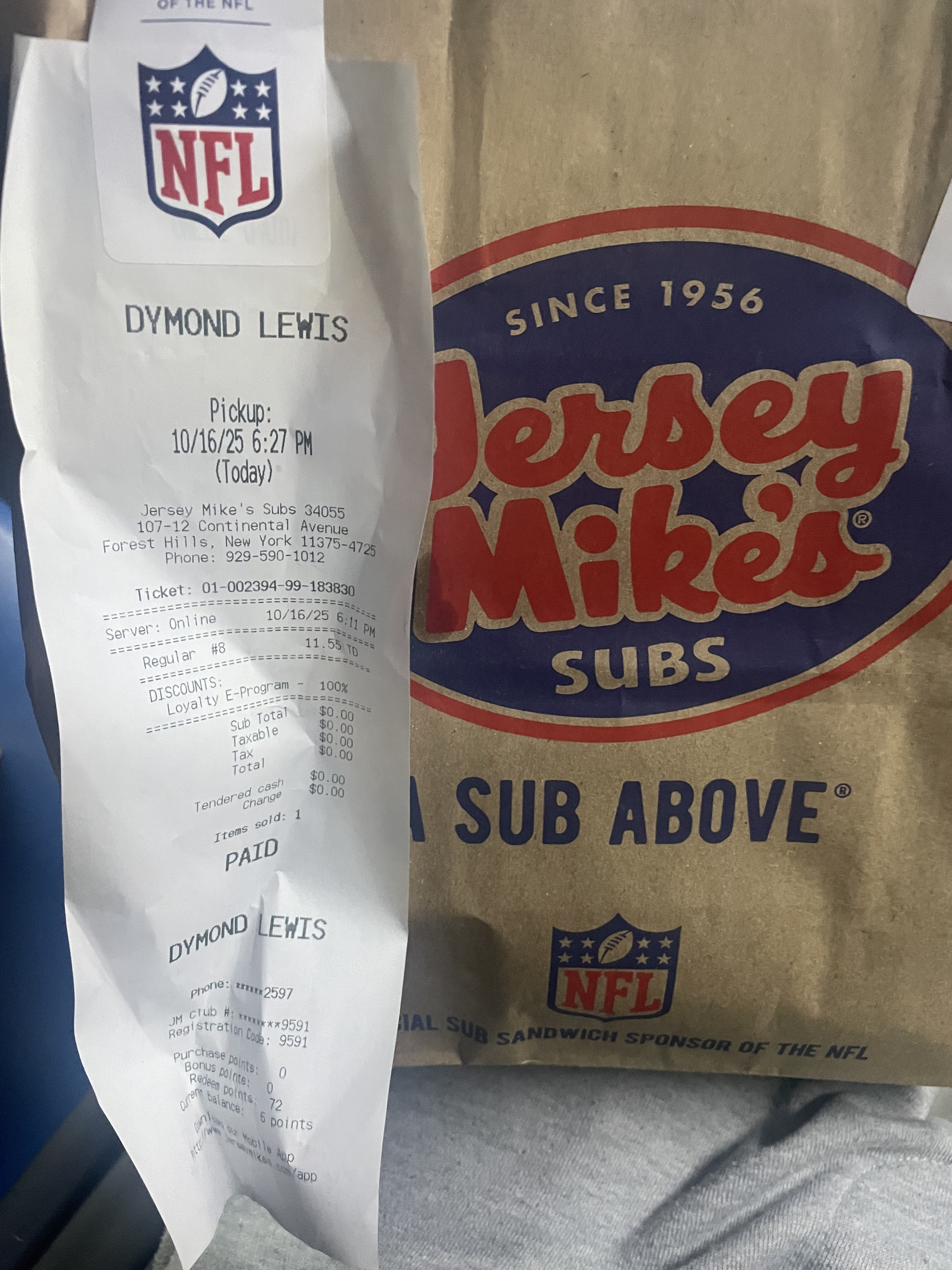 Jersey Mike's | 72+ Points [1x Regular Sub/Wrap]