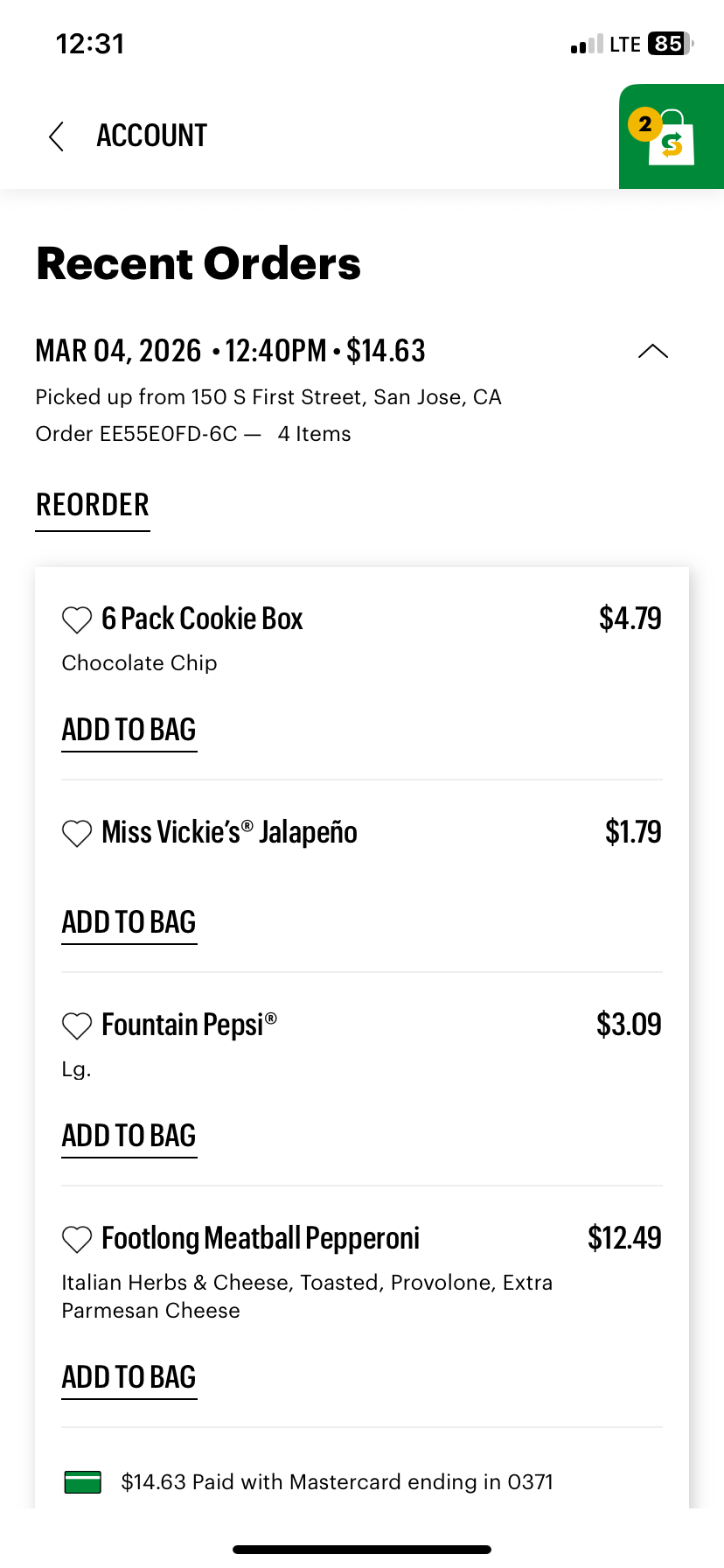 Forgot to post but subway been valid and hitting