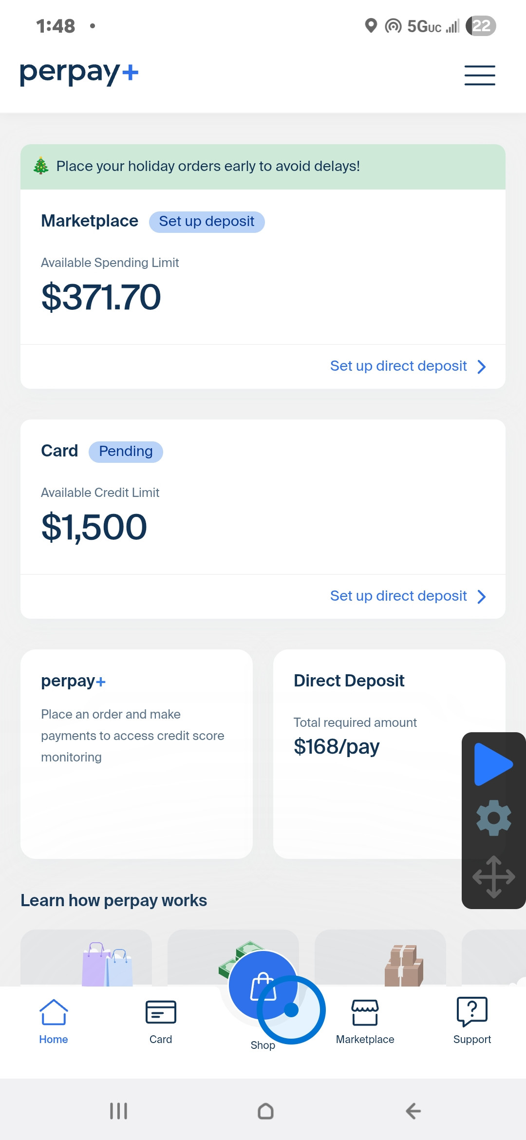Have to deposit a bit to utilize the amount shown. And deposit as in payroll..