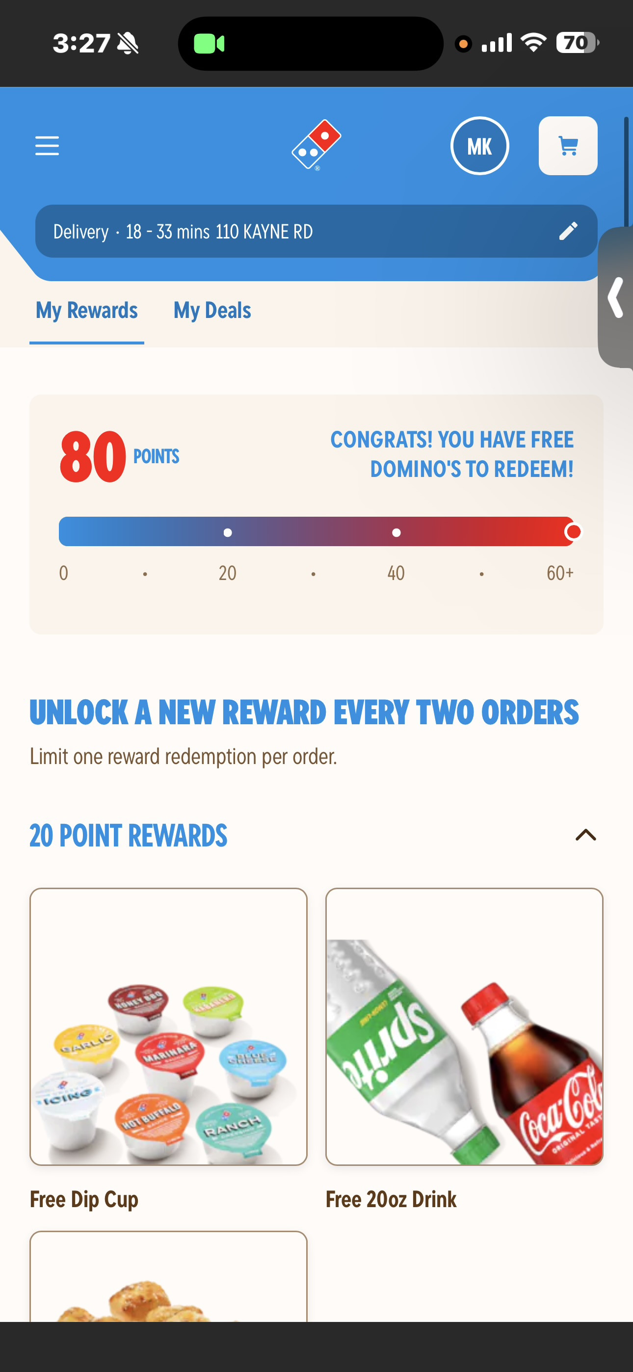 Dominos | 60+ Points [1x Free 2-Topping Medium Pizza]