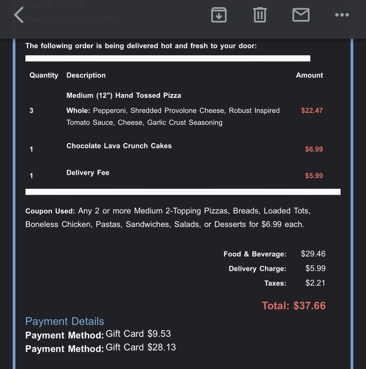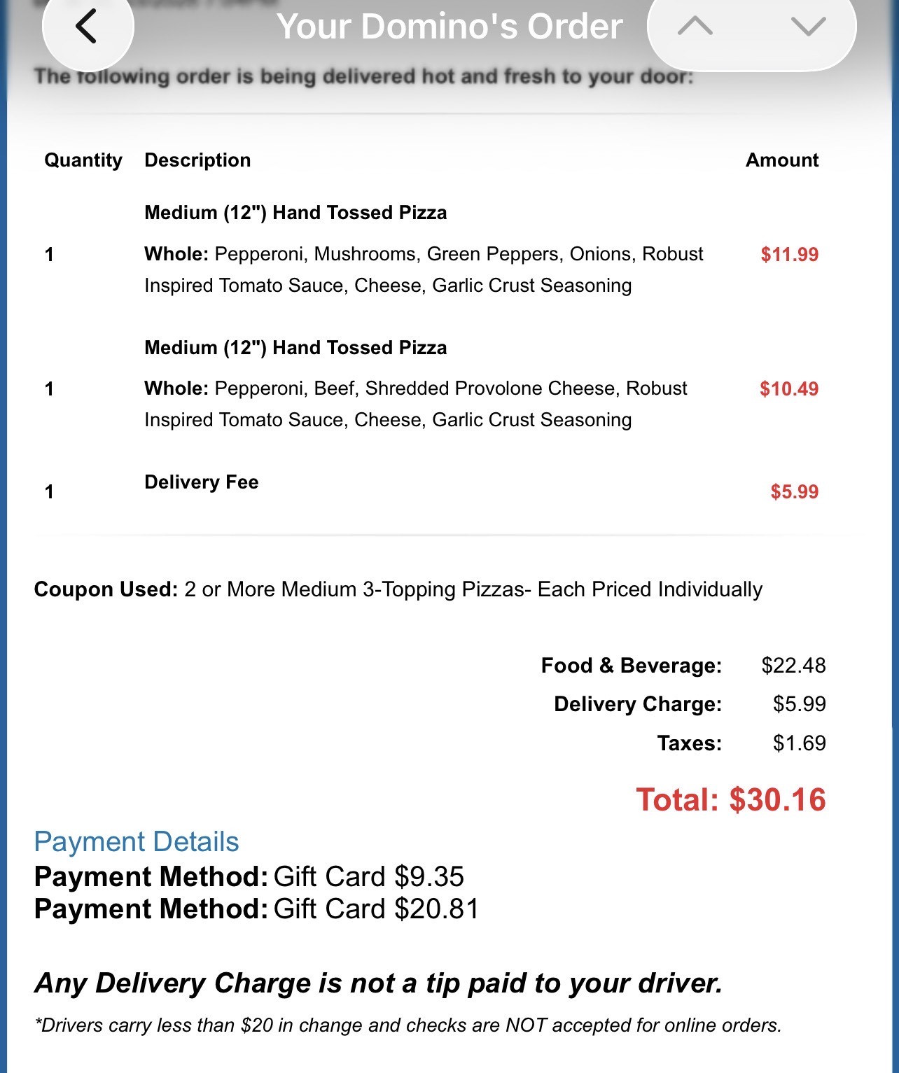 Dominos | $25 - $30 GC:PIN