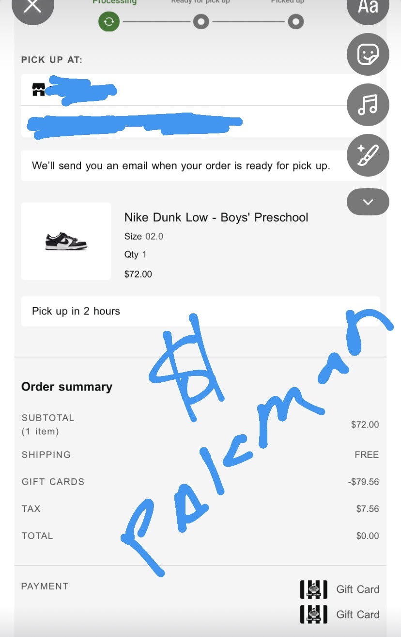 order placed with gift card and shipped same day!!!