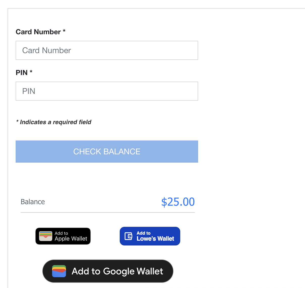 Lowe's | $25 - $30 GC:PIN