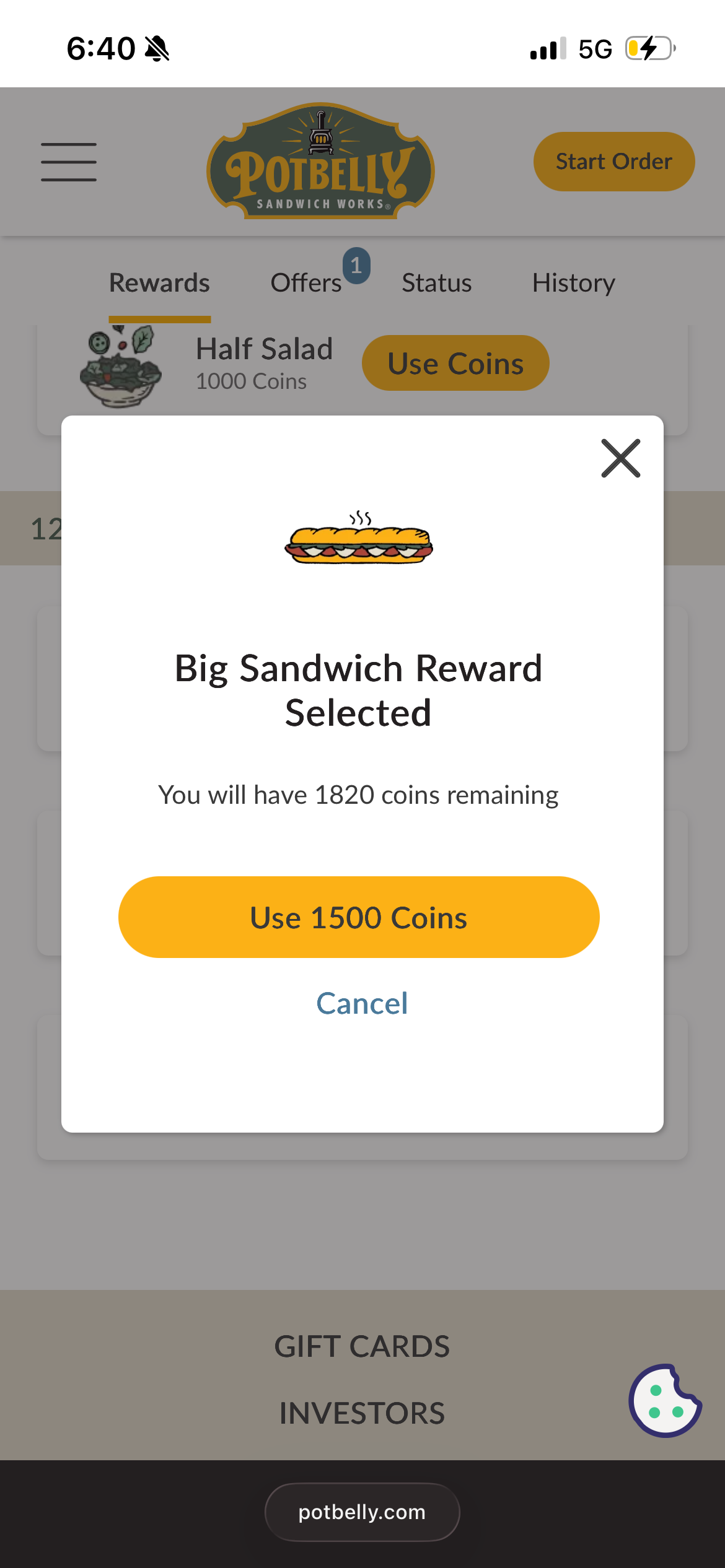 Potbelly | 1500+ Points [1x Free Big Sandwich]