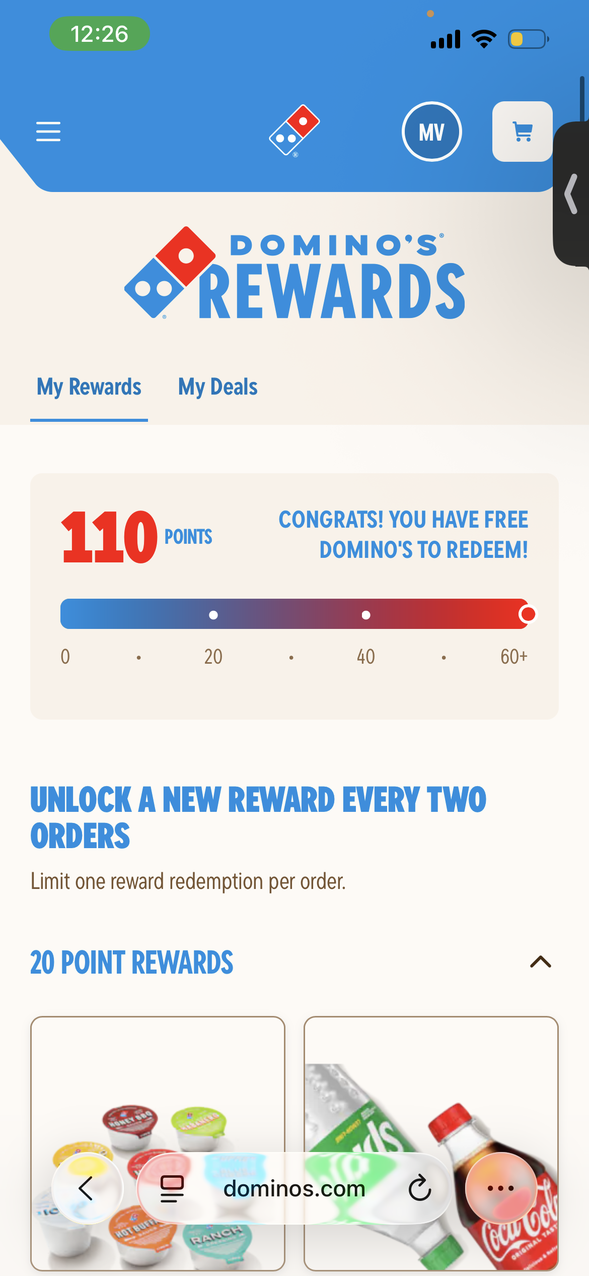 Dominos | 60+ Points [1x Free 2-Topping Medium Pizza]