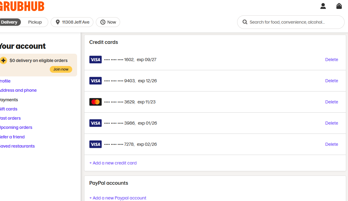 Grubhub | Visa/Mastercard