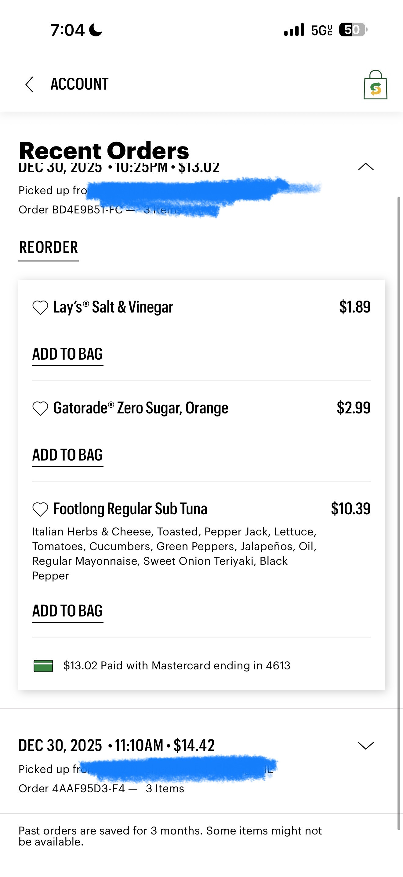 Subway | Visa/Mastercard