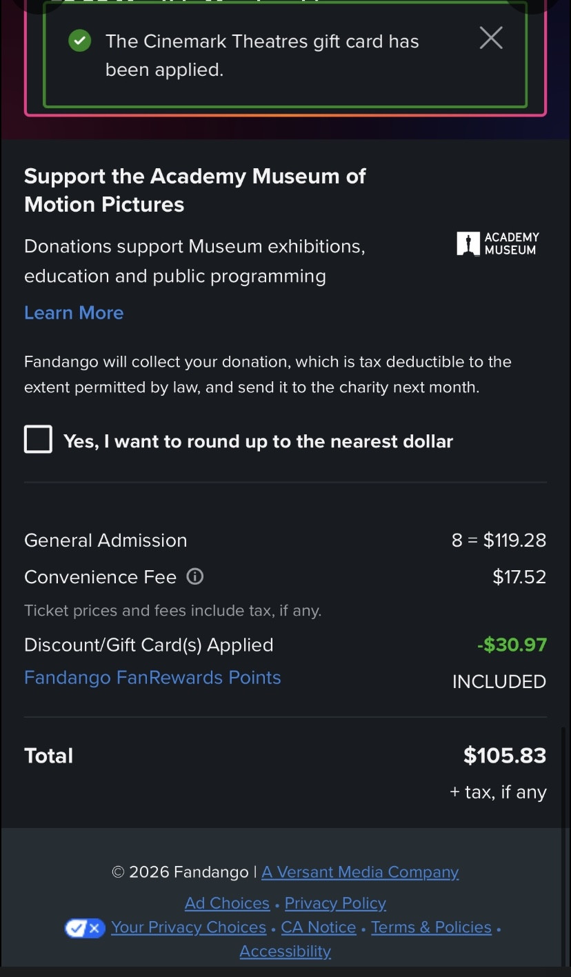 Cinemark | $50 - $75 Gift Card