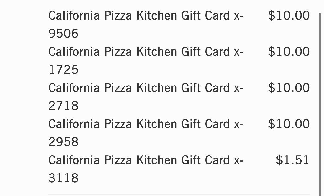 California Pizza Kitchen | $10 - $15 GC:PIN