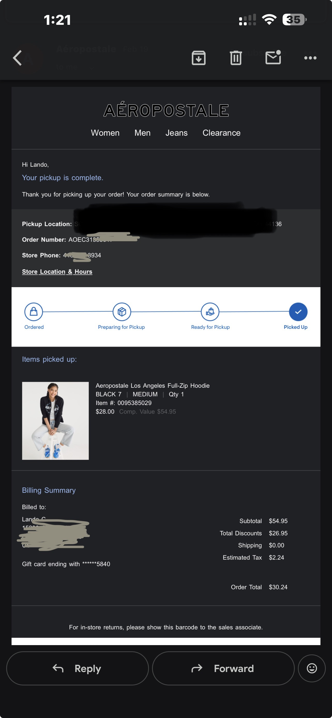 Aeropostale | $30 - $40 GC:PIN