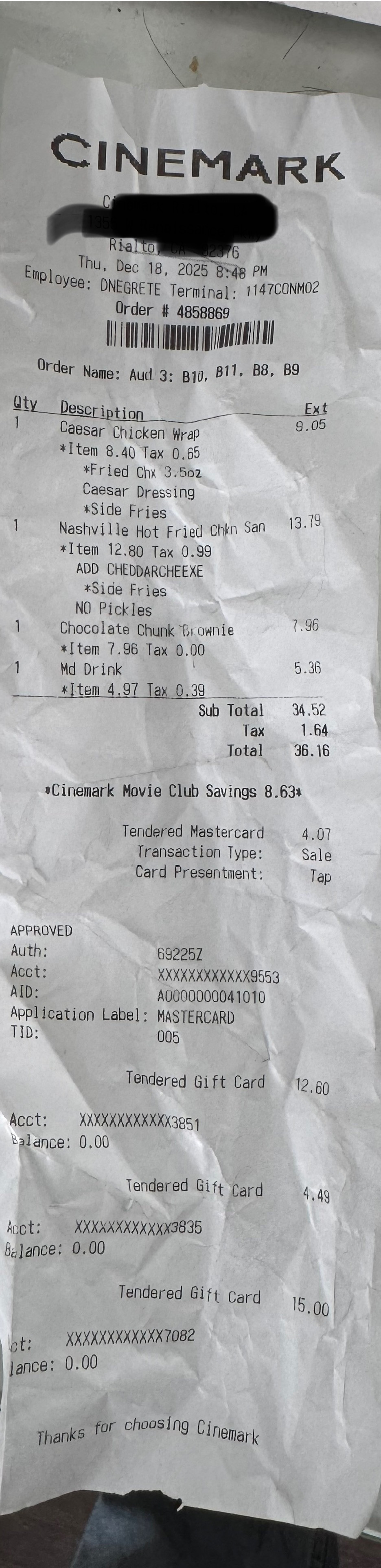 Cinemark gift cards stay putting in work ! They need to restock on these gift cards !