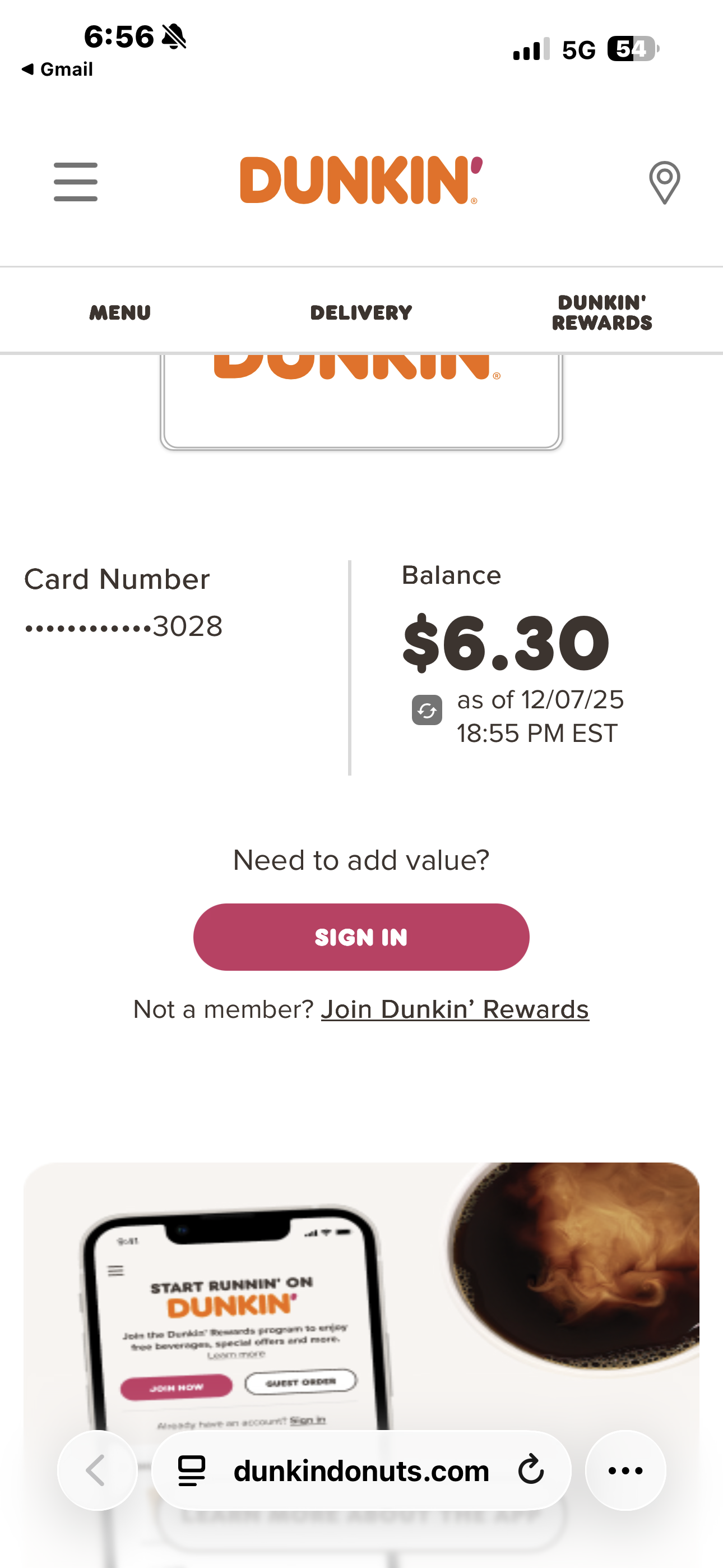 Dunkin' Gift Card | $5 - $10